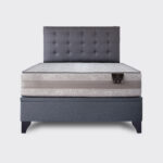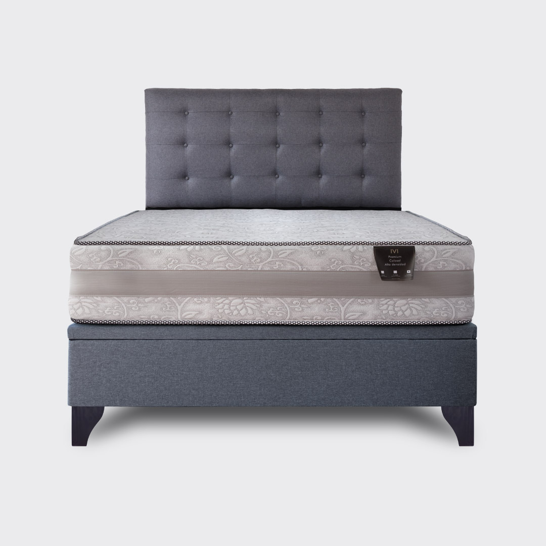 El diseño se complementa con un sofisticado respaldo de botone en color gris, que aporta un toque de distinción y confort, transformando tu cama en el centro de atención de la habitación.