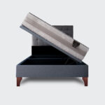Su mayor ventaja reside en su funcionalidad de almacenamiento. Con un práctico sistema de apertura, la base dividida se eleva sin esfuerzo revelando un amplio espacio interior tipo baúl. Este compartimento secreto es ideal para guardar una gran variedad de objetos: ropa de cama extra, edredones, almohadas, ropa de temporada, libros, cajas o cualquier otro artículo que desees tener a mano pero fuera de la vista.