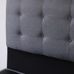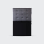 El diseño se complementa con un sofisticado Respaldo estilo Botone en color gris que no solo añade un toque de distinción a tu dormitorio, sino que también ofrece un cómodo apoyo.