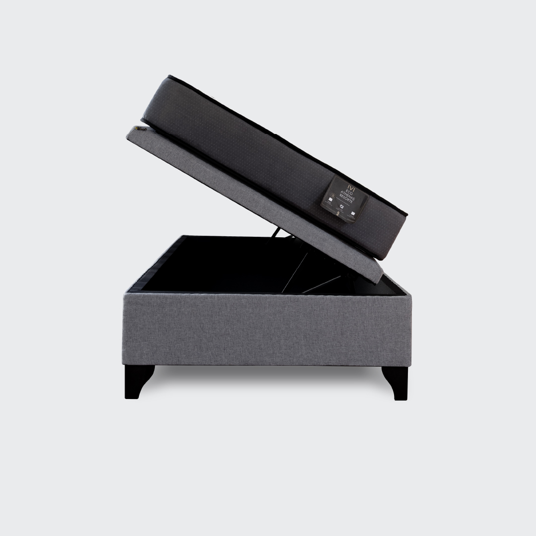 Cuenta con un amplio espacio interior de almacenamiento accesible mediante una apertura horizontal. Levantar la base es sencillo, permitiéndote guardar ropa de cama, almohadas u otros artículos de forma discreta y organizada, optimizando cada centímetro de tu espacio.
