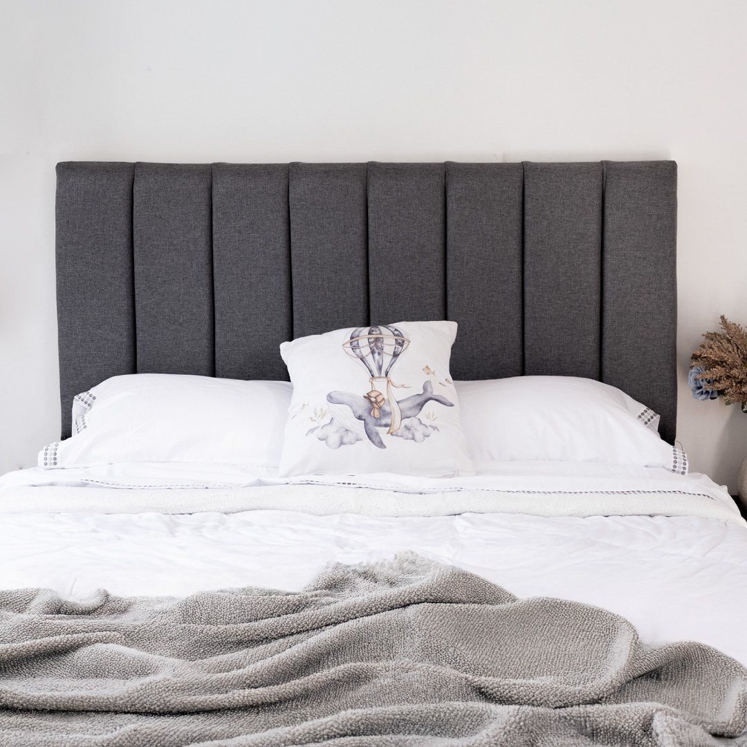 Recubierto en tela de lino de alta gama, suave al tacto y resistente, disponible en un sofisticado color gris.